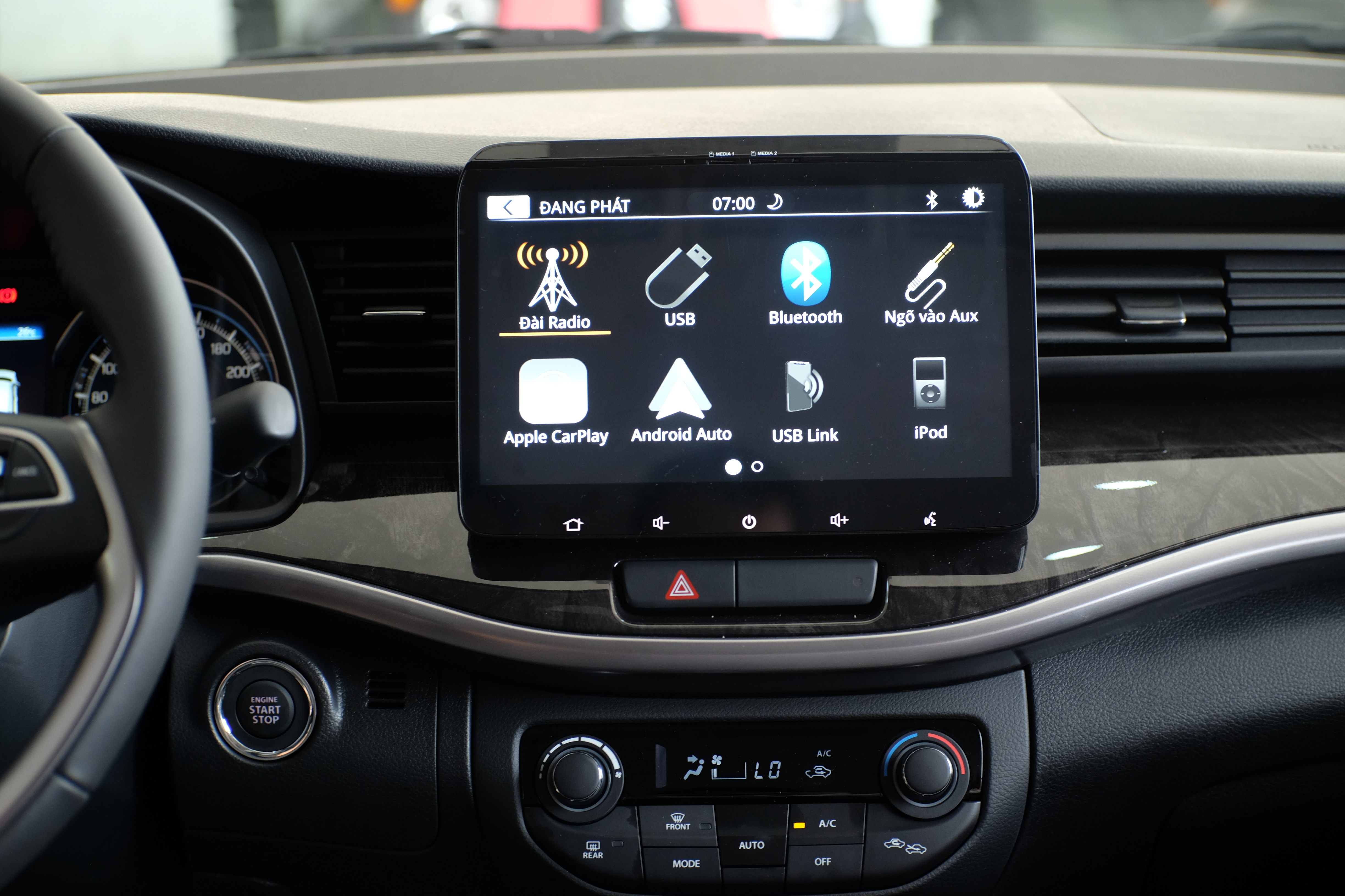 Màn hình Androi được trang bị trên Suzuki XL7 Hybrid 2025 có kích cỡ 10 inch dạng nổi rất hiện đại. Tiếp đến là bảng điều khiển điều hoà điện tử cho cảm giác rất “xịn sò”. Và hệ thống cửa gió trên taplo cũng có thiết kế khá đẹp. So với nhiều xe 7 chỗ hạng B thì nhiều người đánh giá XL7 có taplo thuộc hàng ưa nhìn nhất.
