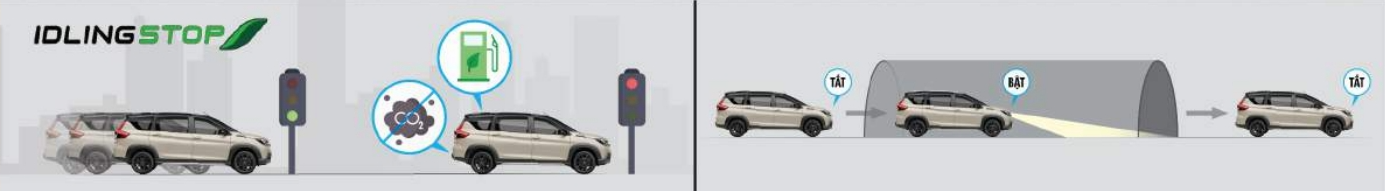 Ngắt động cơ tạm thời (Idling stop) và đèn tự động bật/tắt trên Suzuki Xl7 Hybrid.