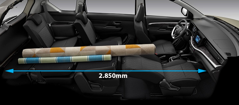 Các hàng ghế Suzuki XL7 Hybrid 2025 có thể gập phẳng để mở rộng khoang để hành lý